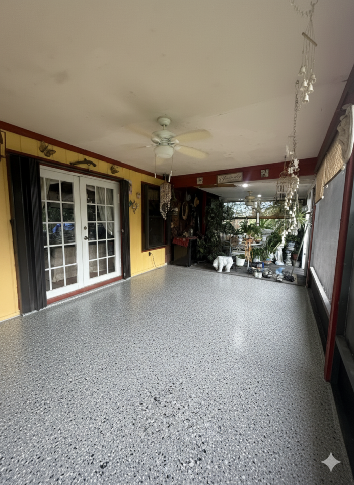 Choose from a wide range of colors, textures, and coating systems — from sleek metallics to durable flake finishes. We’ll help you pick the perfect look and performance for your space and the South Florida climate.